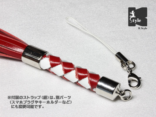 オプションで、ストラップ(紐)をキーホルダーに変更する事でバッグなどに取り付ける事も可能です→