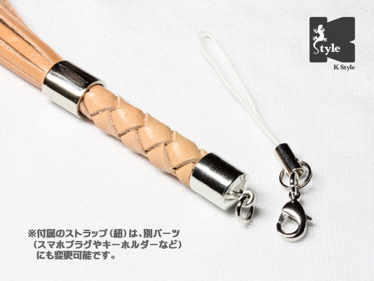 オプションで、ストラップ(紐)をキーホルダーに変更する事でバッグなどに取り付ける事も可能です→