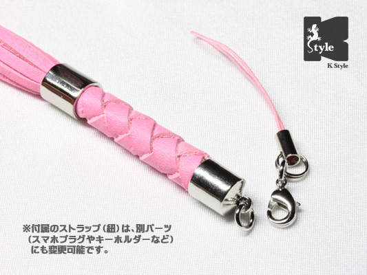 オプションで、ストラップ(紐)をキーホルダーに変更する事でバッグなどに取り付ける事も可能です→