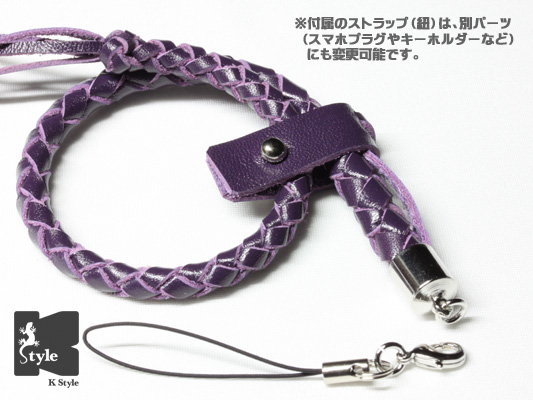オプションで、ストラップ(紐)をキーホルダーに変更する事でバッグなどに取り付ける事も可能です→