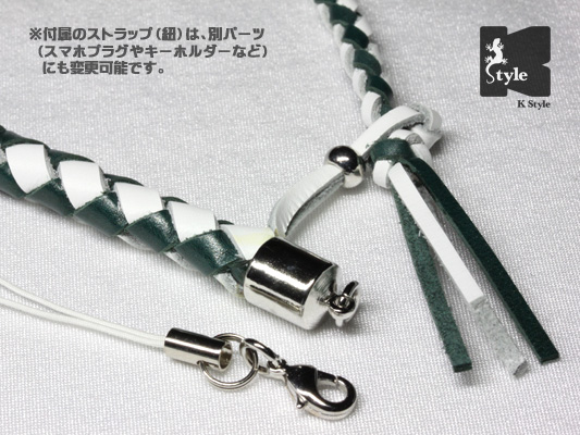 オプションで、ストラップ(紐)をキーホルダーに変更する事でバッグなどに取り付ける事も可能です→