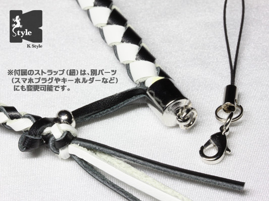 オプションで、ストラップ(紐)をキーホルダーに変更する事でバッグなどに取り付ける事も可能です→