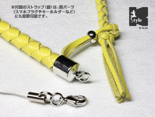 オプションで、ストラップ(紐)をキーホルダーに変更する事でバッグなどに取り付ける事も可能です→