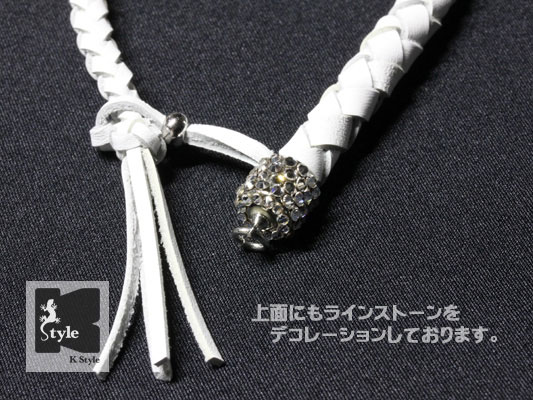 ぷち一本ムチ シグナル 白にスワロフスキーのラインストーンを1つ1つデコレーションした、ゴージャスなストラップです。