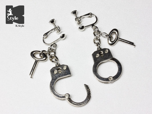 小さな手錠(鍵付)が付いたイヤリングです。(2個)
