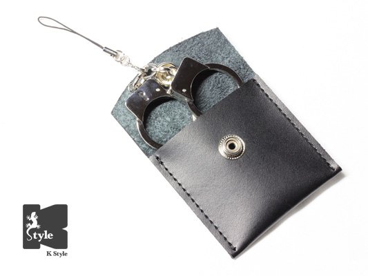 手錠型のカラビナ(ラージサイズ)に携帯用の紐(ケプラー製)の付いたストラップです。