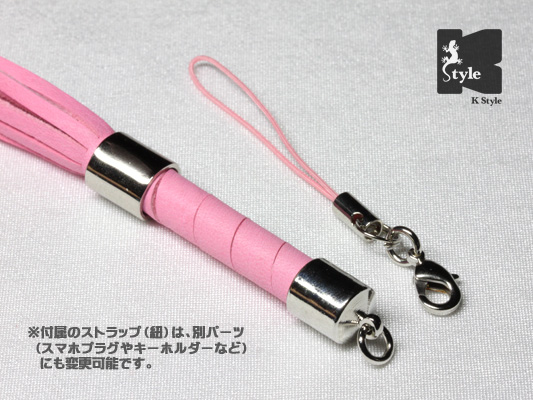 オプションで、ストラップ(紐)をキーホルダーに変更する事でバッグなどに取り付ける事も可能です→